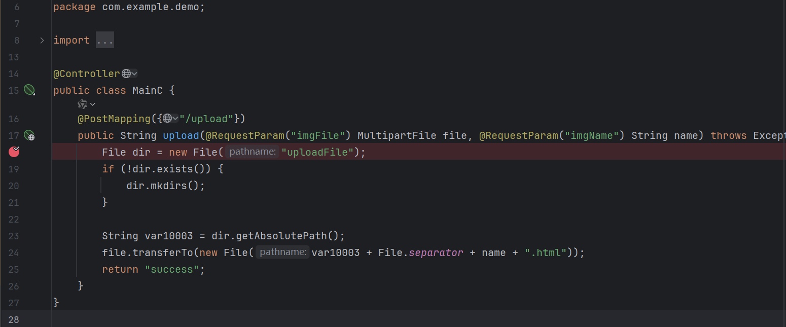 由于目标有 thymeleaf 依赖 , 又有上传功能 , 很明显是打 SSTI , 在配置文件中可以看到模板文件位于 templates/