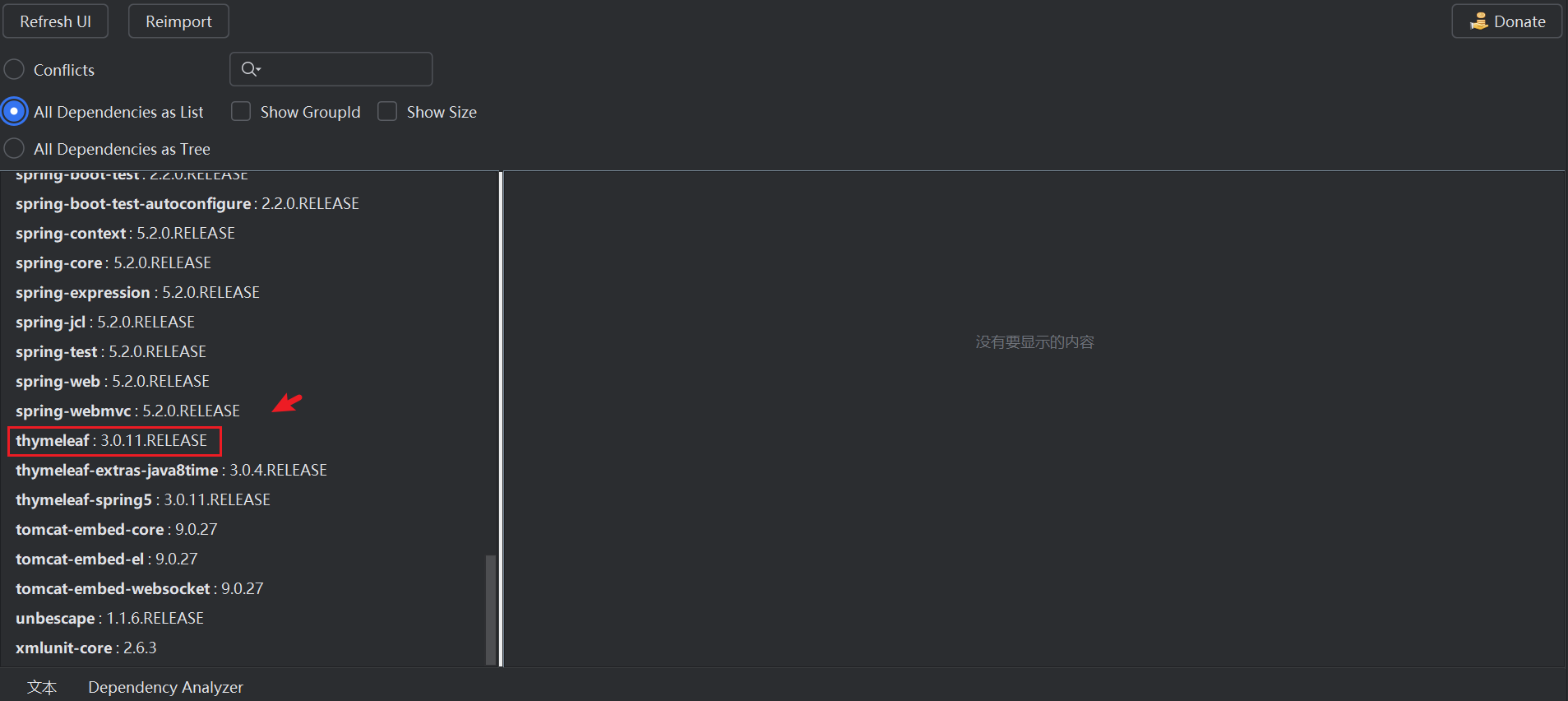 可以用下面的命令来查看当前依赖详情 , 从而看出当前 Thymeleaf 的版本 :