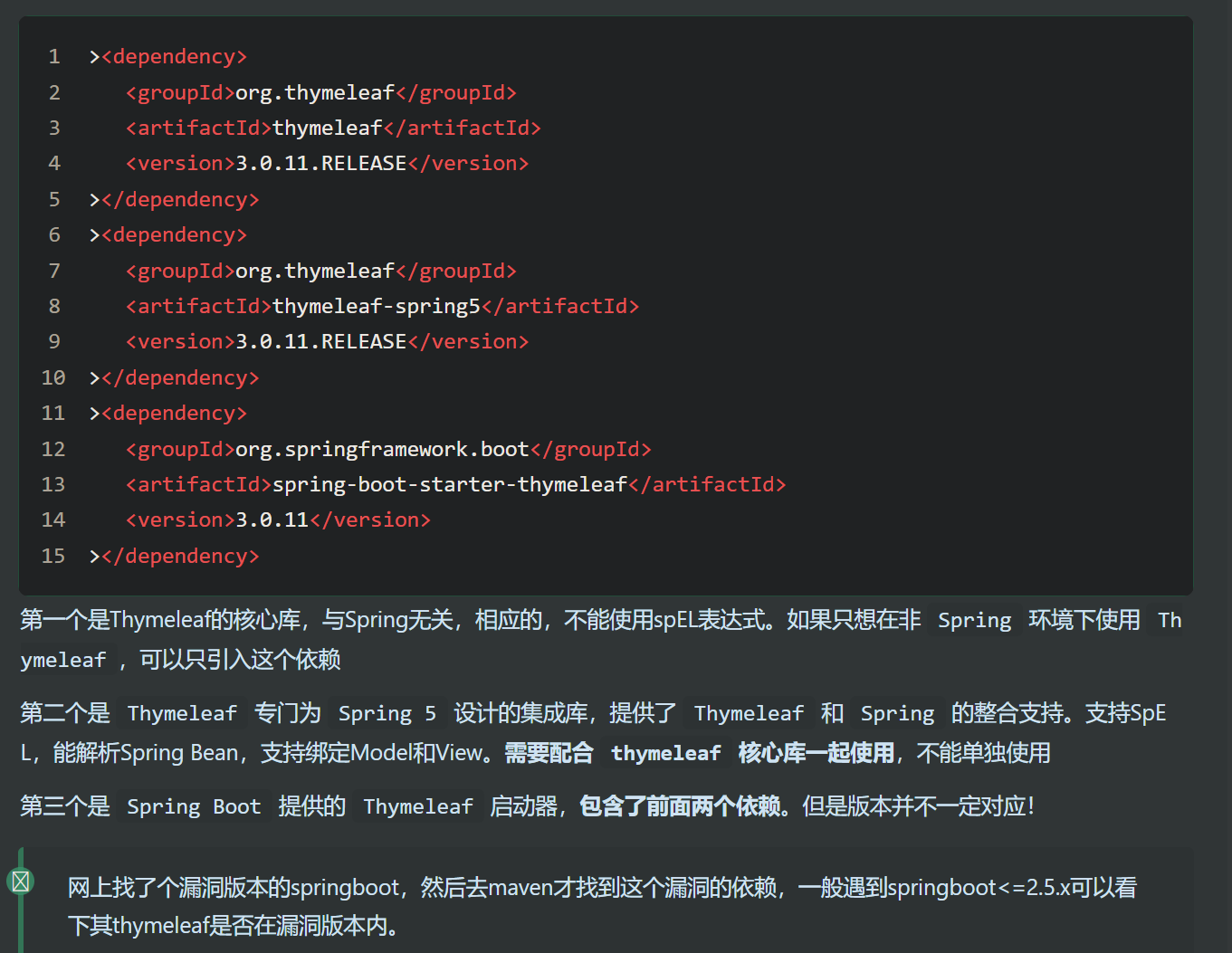 Thymeleaf SpringBoot 中自带 Thymeleaf 依赖 , 版本对应关系如下 :