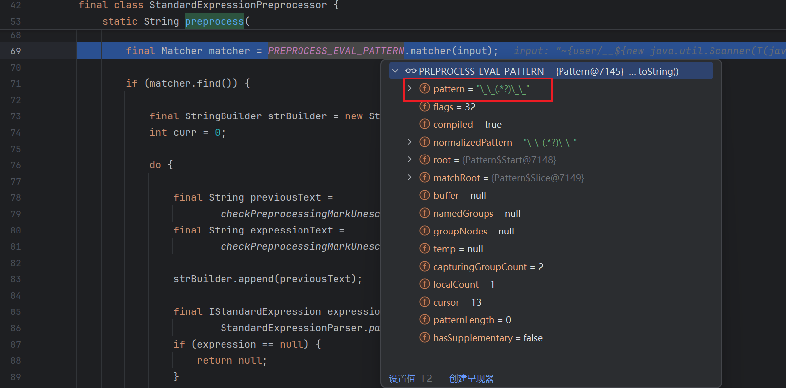 预处理分支 继续看 preprocess , 接下来会提取我们输入中双下划线包裹的部分 , 即 ${xxx} :
