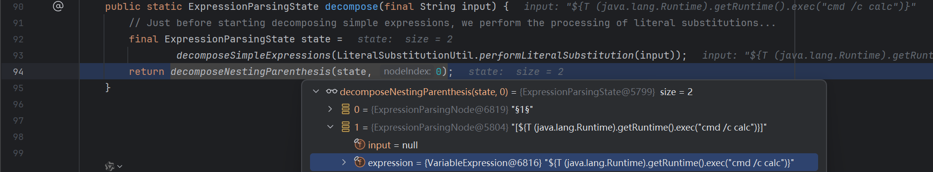 再退出来 , 进入 org.thymeleaf.standard.expression.ExpressionParsingUtil#decomposeNestingParenthesis :