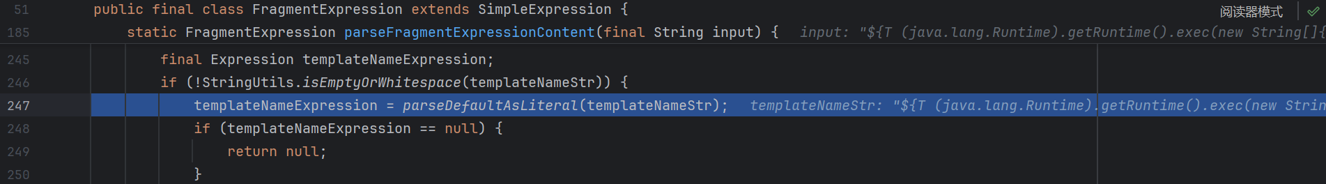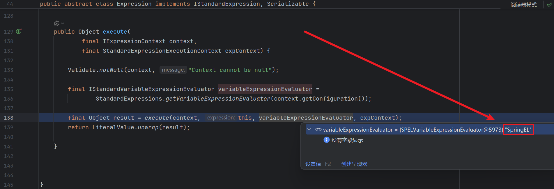 可以看到执行的表达式已经是 SpEL 的形式了 , 后面继续跟进就能看到使用的是 SpEL :