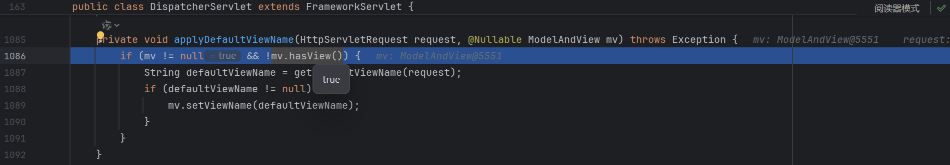 这部分代码非常简单 , 当我们的 ModelAndView 不为空并且没有视图名 , 就会给它设置一个默认的视图名称