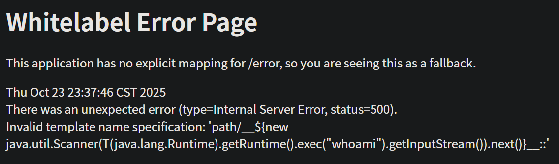 在 Springboot <= 2.2 时该配置默认值就是 always , 此时 500 页面会返回报错信息 , 从而可以利用它回显执行结果