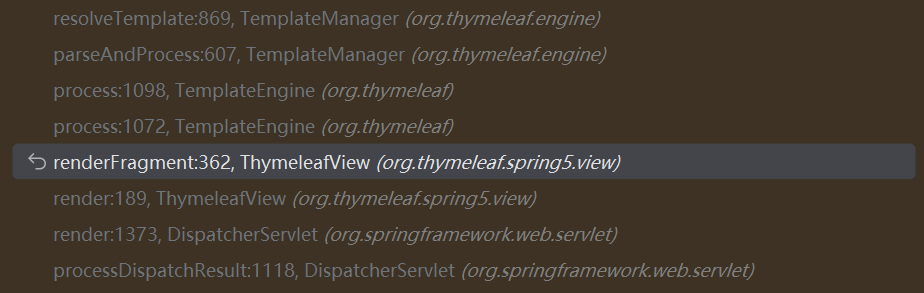 如图是以 Thymeleaf 为例的调试截图 , 可以看到这里有很多解析器 :