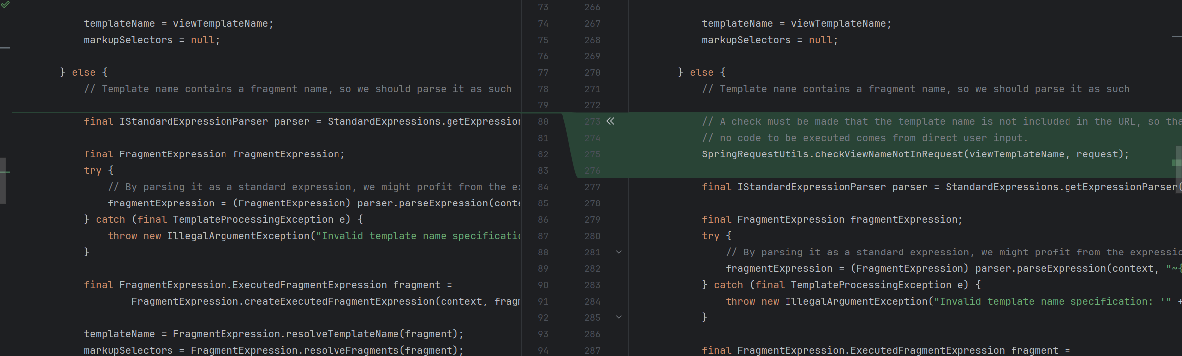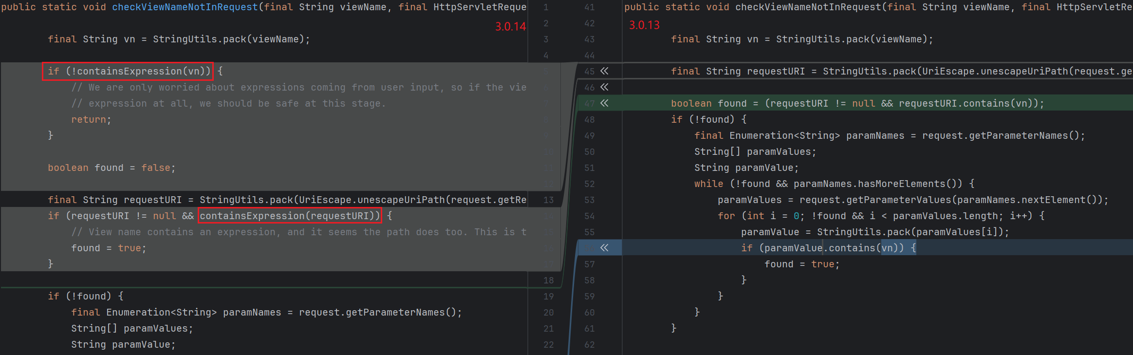 3.0.14 这个版本的 org.thymeleaf.spring5.util.SpringRequestUtils#checkViewNameNotInRequest 做了升级 :