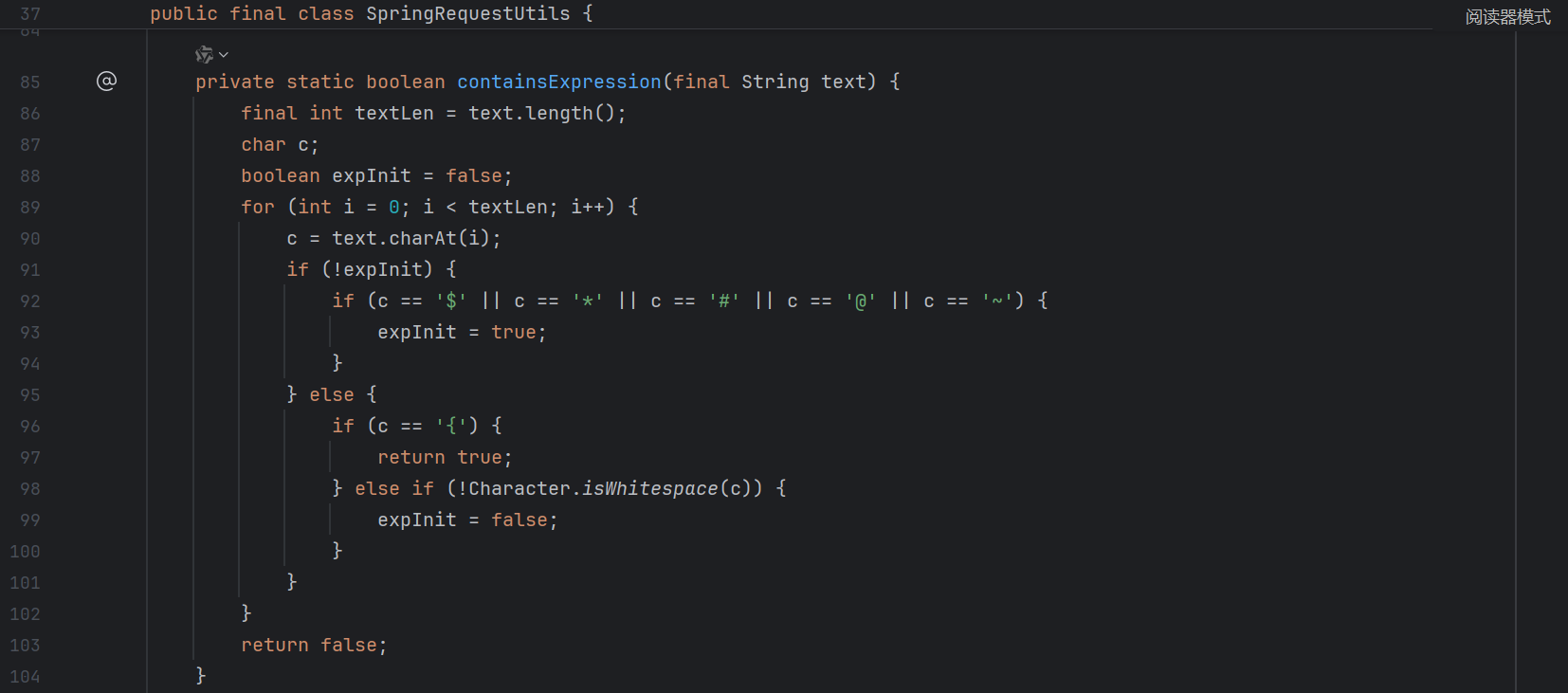 判断 $ * # @ ~ 后面是否是 { , 是的话就会被判定为含有表达式 , 导致直接抛出异常